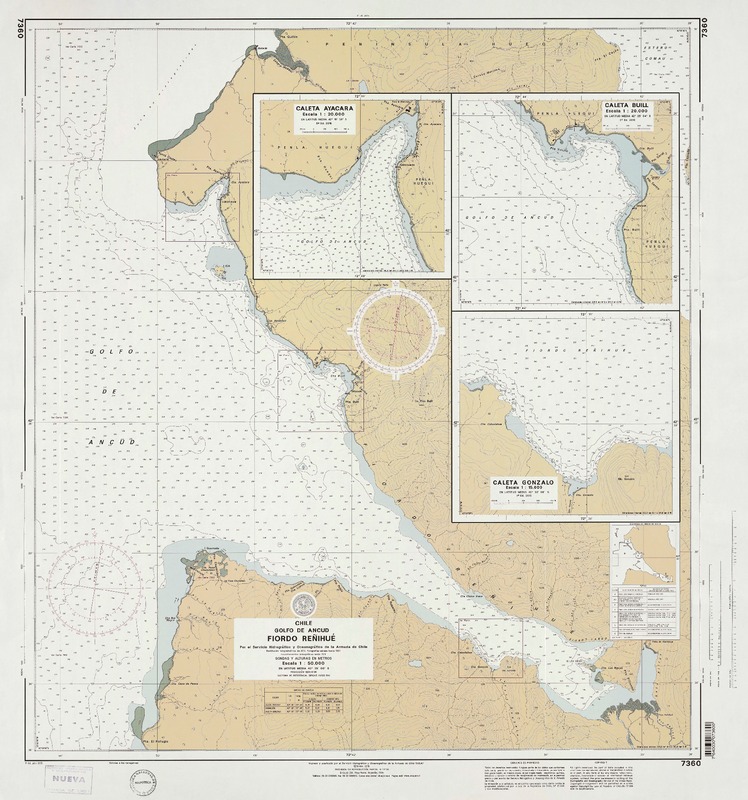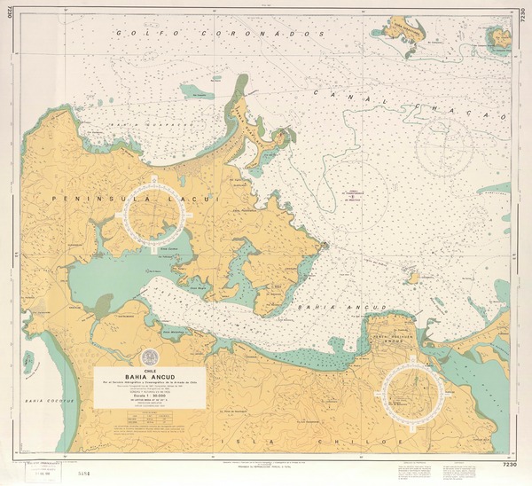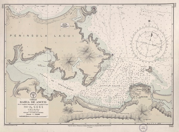 Bahía Ancud [material cartográfico] por el Servicio Hidrográfico y Oceanográfico de la Armada de Chile.