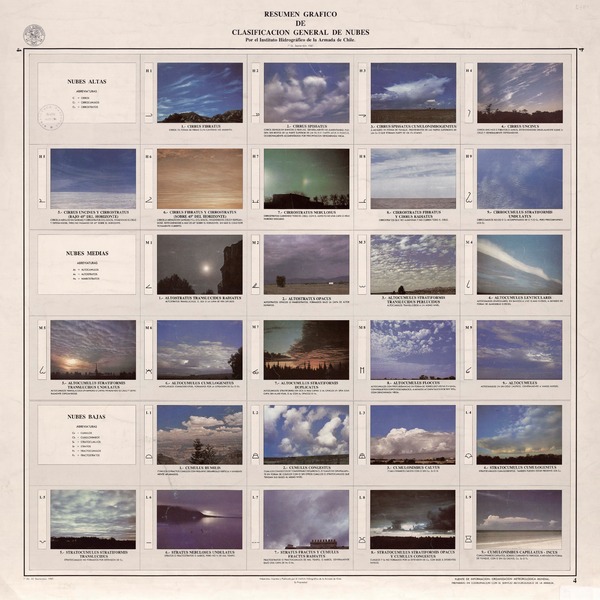 Resumen gráfico de clasificación general de nubes [estampa] por el Instituto Hidrográfico de la Armada de Chile.