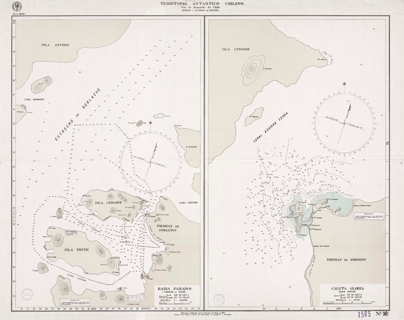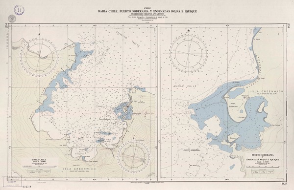 Bahía Chile, Puerto Soberanía y Ensenadas Rojas e Iquique territorio Chileno Antártico [material cartográfico] : por el Servicio Hidrográfico y Oceanográfico de la Armada de Chile.