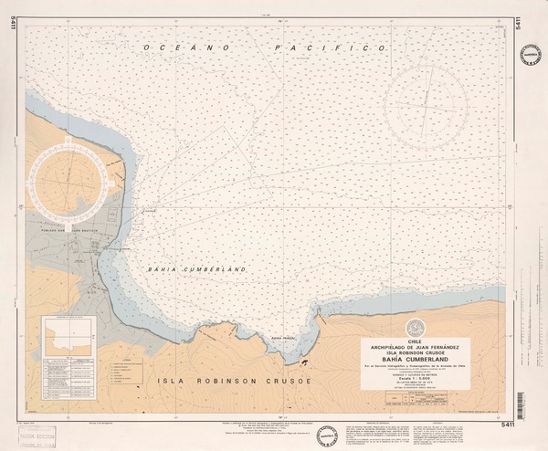 Bahía Cumberland Archipiélago de Juan Fernández, Isla Robinson Crusoe [material cartográfico] : por el Servicio Hidrográfico y Oceanográfico de la Armada de Chile.
