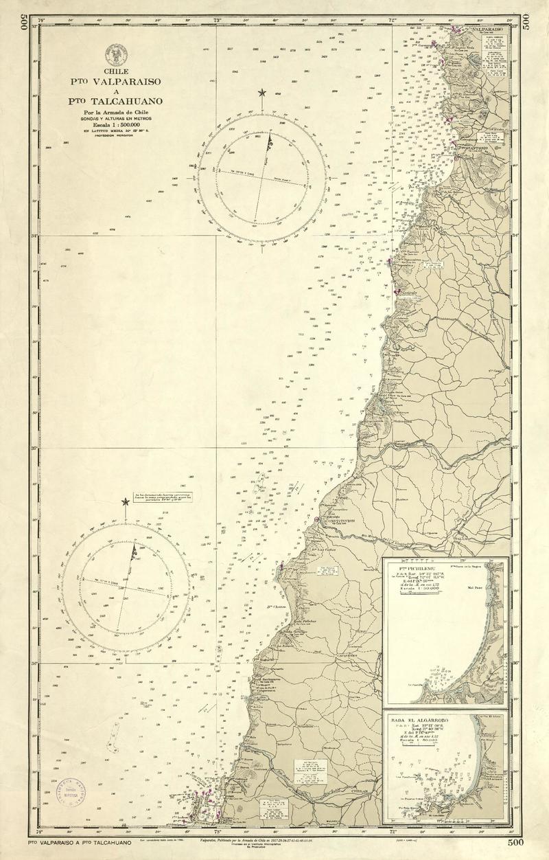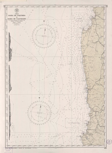 Bahía Coquimbo a Bahía Valparaíso [material cartográfico] por el Servicio Hidrográfico y Oceanográfico de la Armada de Chile.