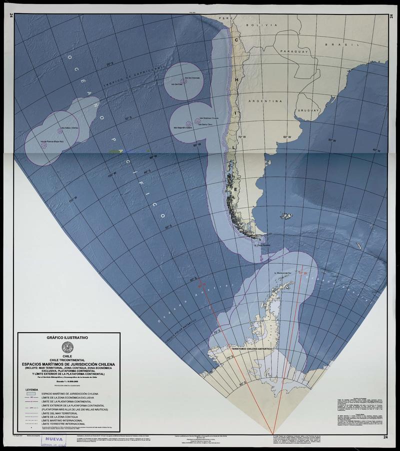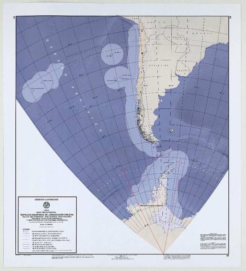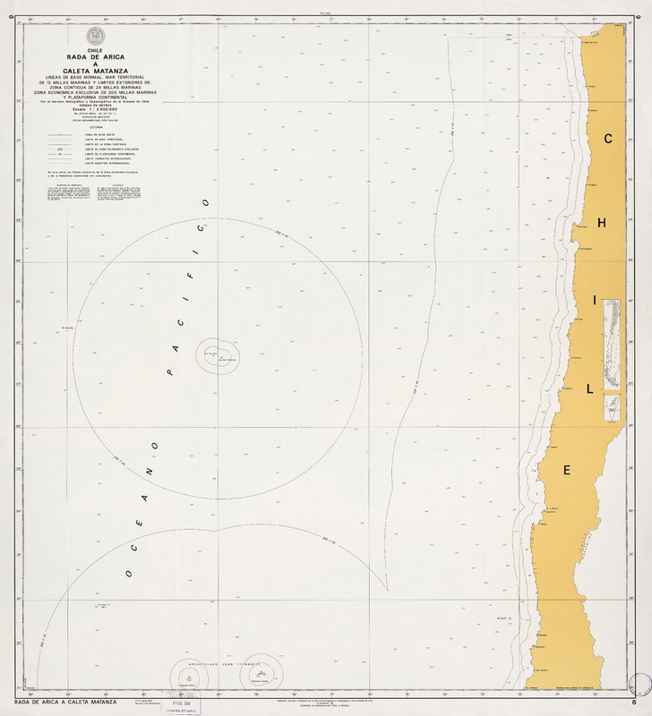 Rada de Arica a Bahía Mejillones del Sur delimitación de la plataforma y talud continental del mar chileno[material cartográfico] : por el Instituto Hidrográfico de la Armada de Chile.