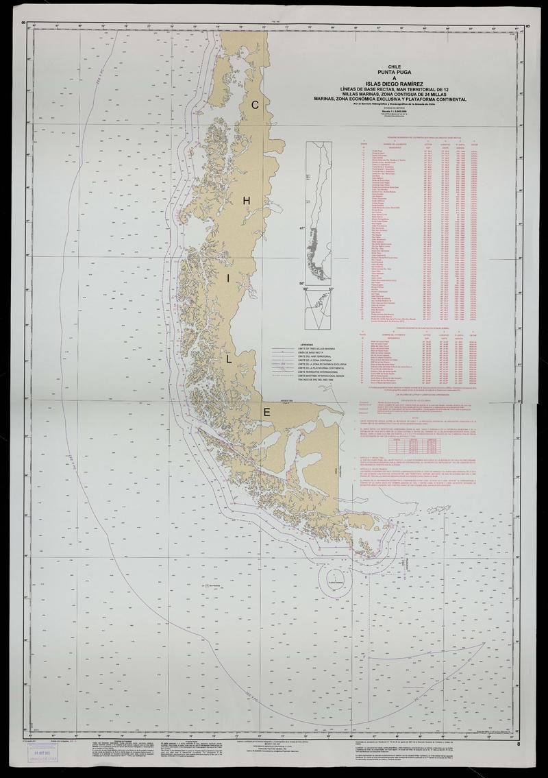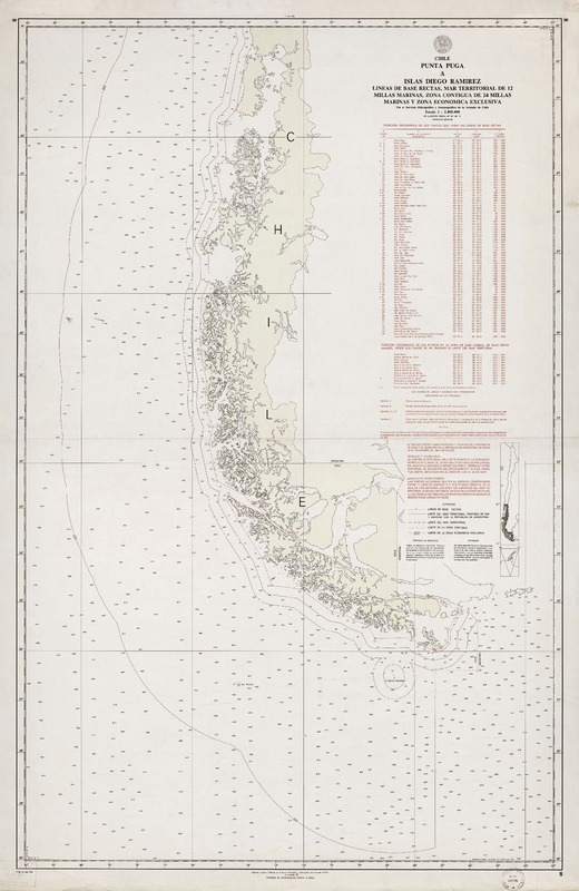 Punta Puga a Islas Diego Ramirez líneas de base rectas, mar territorial de 12 millas marinas, zona contigua de 24 millas marinas y zona económica exclusiva [material cartográfico] : por el Servicio Hidrográfico y Ocenográfico de la Armada de Chile.