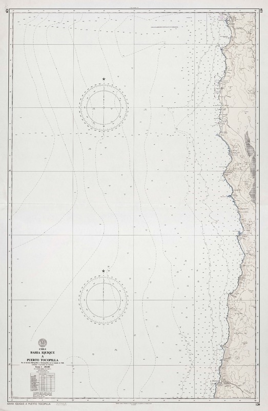Bahía Iquique a Puerto Tocopilla [material cartográfico] por el Servicio Hidrográfico y Oceanográfico de la Armada de Chile.