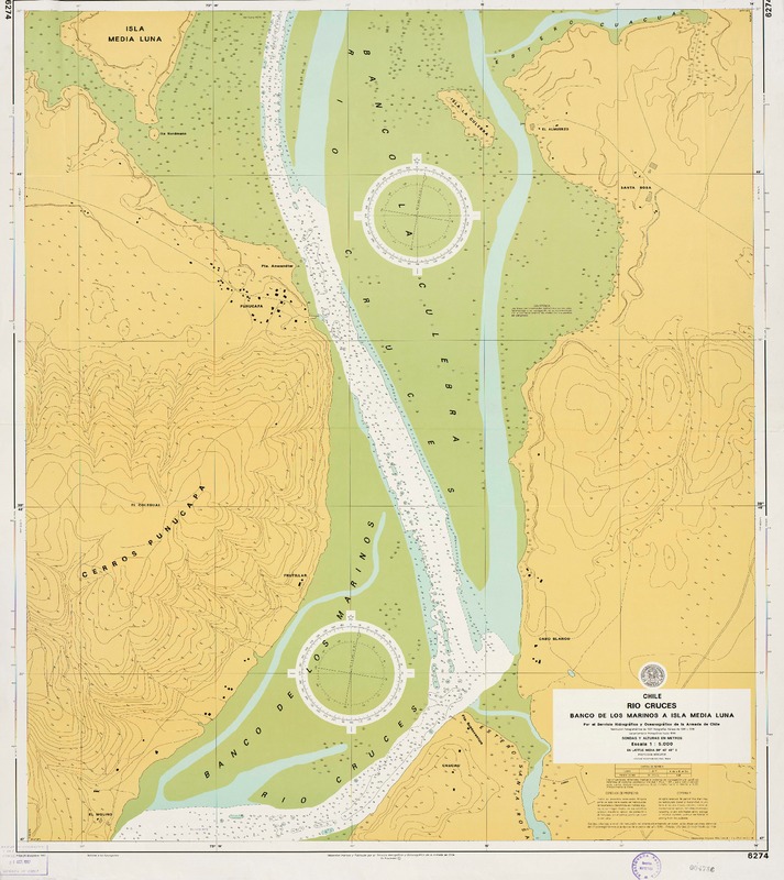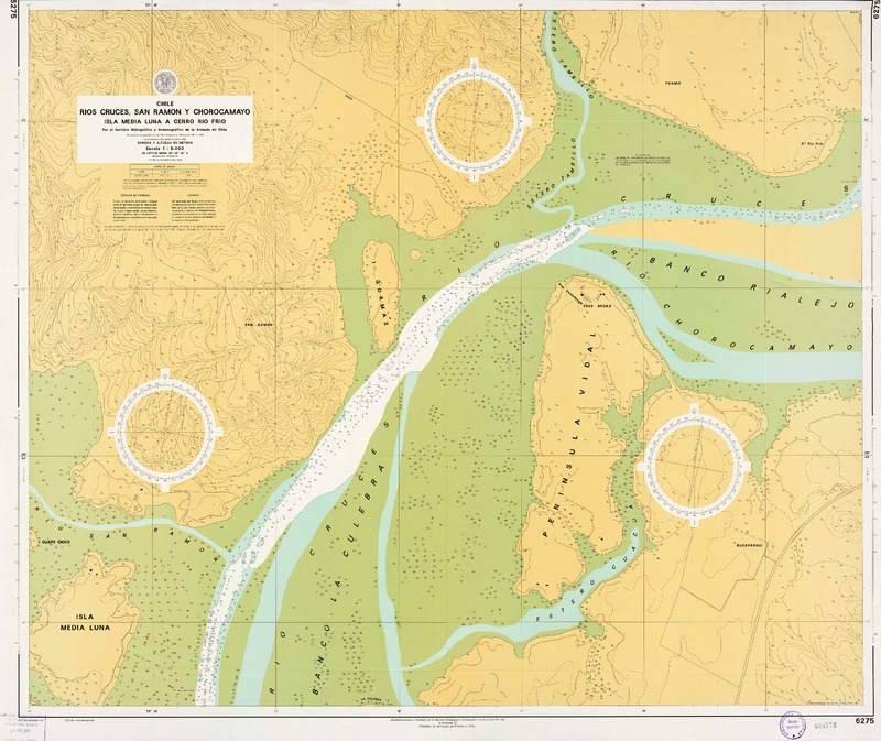 Ríos Cruces, San Ramón y Chorocamayo Isla Media Luna a Cerro Río Frío [material cartográfico] : por el Servicio Hidrográfico y Oceanográfico de la Armada de Chile.