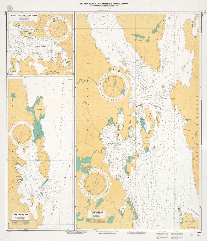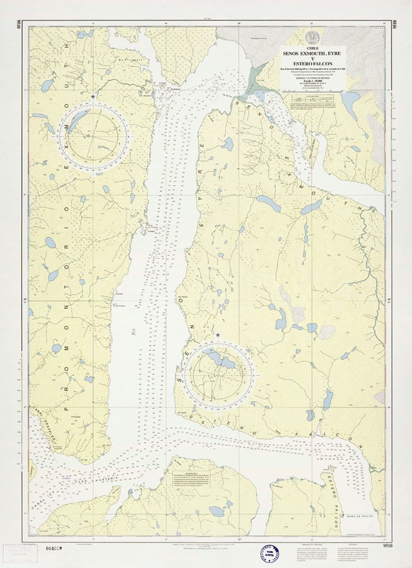 Senos Exmouth, Eyre y Estero Falcon [material cartográfico] por el Servicio Hidrográfico y Oceanográfico de la Armada de Chile.