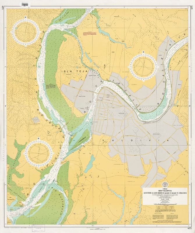Río Valdivia acceso a los ríos Calle Calle y Cruces [material cartográfico]: por el Servicio Hidrográfico y Oceanográfico de la Armada de Chile.