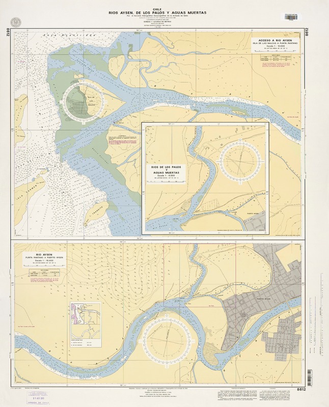 Ríos Aysén, de Los Palos y Aguas Muertas [material cartográfico] por el Servicio Hidrográfico y Oceanográfico de la Armada de Chile.