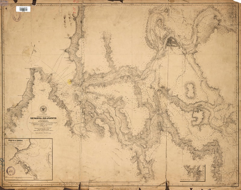 Acceso a los ríos Valdivia y Torna Galeones [material cartográfico] por el Servicio Hidrográfico y Oceanográfico de la Armada de Chile.