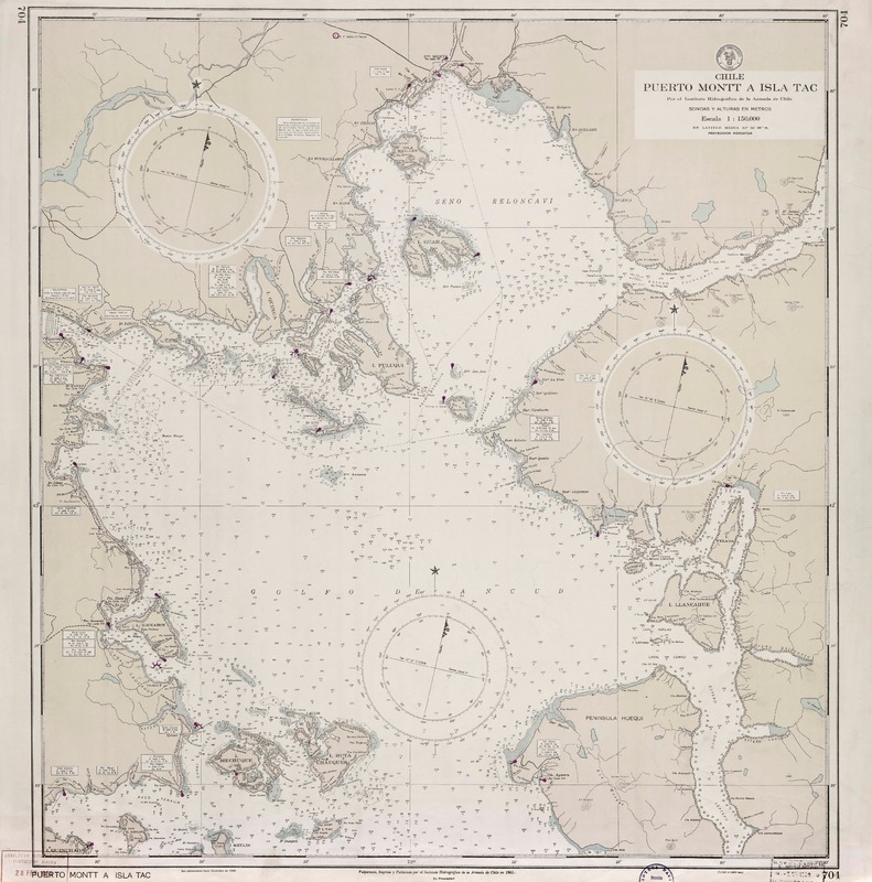 Seno Reloncaví [material cartográfico] por el Servicio Hidrográfico y Oceanográfico de la Armada de Chile.