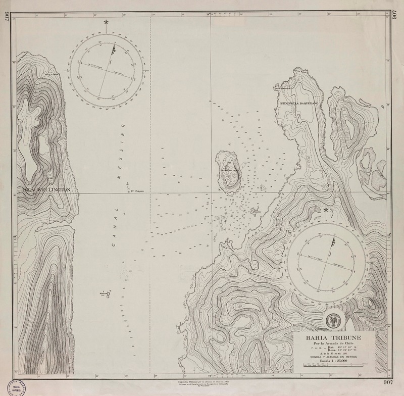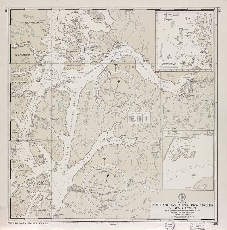 Seno Aysén [material cartográfico] por el Servicio Hidrográfico y Ocenagráfico de la Armada de Chile.