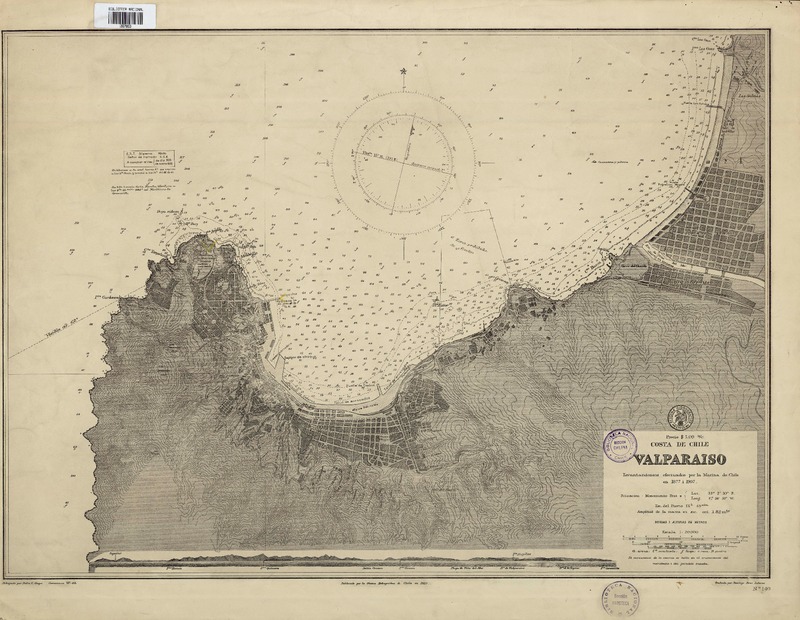 Valparaíso costa de Chile [material cartográfico] : levantamientos efectuados por la Marina de Chile en 1877 i 1907.