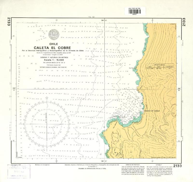 Rada Arica a Caleta Matanzas [material cartográfico] por el Servicio Hidrográfico y Oceanográfico de la Armada de Chile.