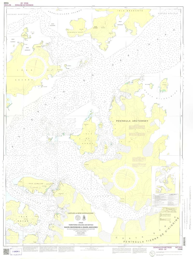 Bahía Markmann a Bahía Andvord territorio Chileno Antártico [material cartográfico] : por el Servicio Hidrográfico y Oceanográfico de la Armada de Chile.