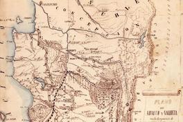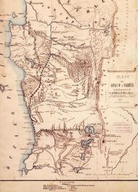 Plano de Arauco y Valdivia con la designacion de la antigua i nueva línea de frontera contra los indios [material cartográfico] / construido por M. J. O. [Chile] : [Editor no identificado], 1870. 1 mapa : color ; 50 x 36 cm. .