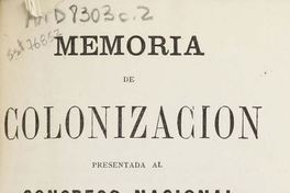 Memoria de Colonización : presentada al Congreso Nacional de 1872 por el Ministro del Ramo.