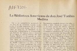La Biblioteca Americana de Don José Toribio Medina. Santiago de Chile : Caja de Previsión de Crédito Hipotecario, 1928. Páginas [922]-926 ; 28 cm. .