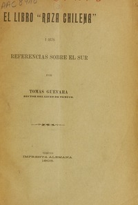 El Libro "Raza chilena" i sus referencias sobre el sur / por Tomás Guevara. Temuco : Impr. Alemana, 1905. 73 p. ; 26 cm. .