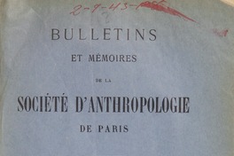 Apartado de: Bulletins et mémories de la Société de "Antrophologie de París".