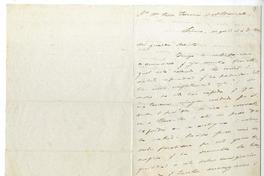 Lima [Perú] [a] Rosa Carrera de Aldunate [Carta], 1860 agosto 26, [manuscrito] Benjamín Vicuña Mackenna.