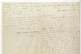 Lima [Perú] [a] Rosa Carrera de Aldunate [Carta], 1860 septiembre 5, [manuscrito] Benjamín Vicuña Mackenna.