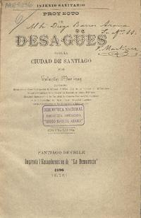 Proyecto de desagües para la ciudad de Santiago / por Valentin Martínez. Santiago de Chile : Imprenta i Encuadernación de "La Democracia", 1896. 55 paginas, 5 hojas de láminas sin numerar : planos ; 23 cm. .