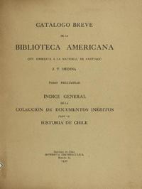Catálogo breve de la Biblioteca Americana que obsequia a la Biblioteca Nacional de Santiago / J. T. Medina ; [prólogo: Guillermo Feliú Cruz]. Santiago de Chile : Imprenta Universitaria, 1926-1951. 7 volúmenes ; 26 cm. .