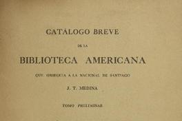 Catálogo breve de la Biblioteca Americana que obsequia a la Biblioteca Nacional de Santiago J. T. Medina ; [prólogo: Guillermo Feliú Cruz].