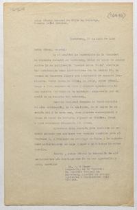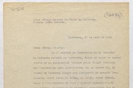Carta transcrita mecanografiada dirigida al Cónsul General de Chile en Hamburgo Vicente Pérez Rosales.