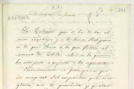 La Relación que se ha de dar al señor arzobispo y a los demas religiosos en lo que ponen a los que fueron al socorro de Chile sobre si la guerra ha sido justa o ynjusta es la siguiente ... [manuscrito] [1583] p. 381-384, encuadernadas ; 32 cm. .