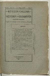 Publicado en: Revista chilena de historia y geografia ; t. 9, no. 13 (1er. trimestre de 1914)