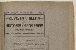 Publicado en: Revista chilena de historia y geografía ; t. 15, no. 19 (3er. trimestre de 1915)