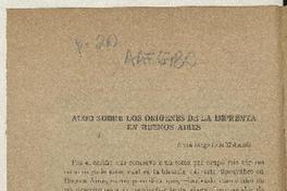 Algo sobre los orígenes de la imprenta en Buenos Aires / José Toribio Medina. Santiago de Chile : Imprenta Universitaria, 1928. Páginas [304]-307 ; 27 cm. .
