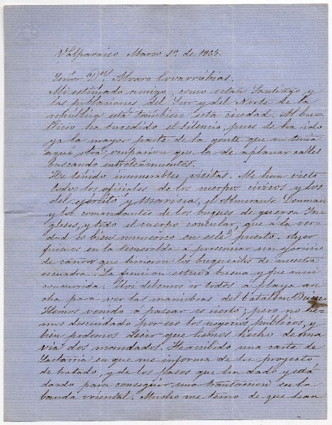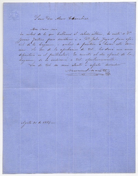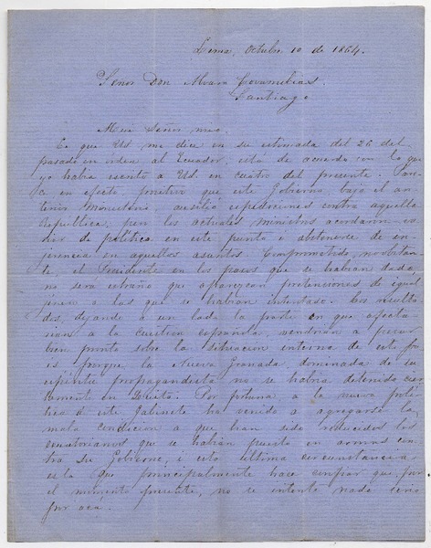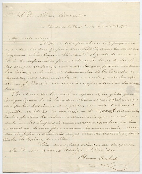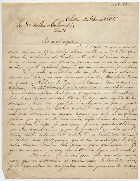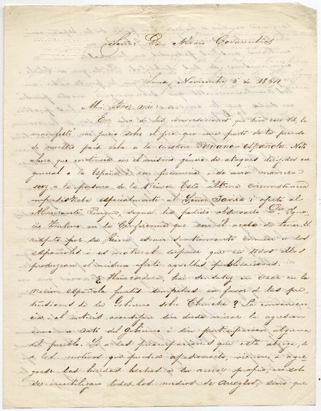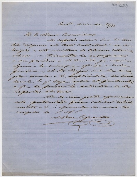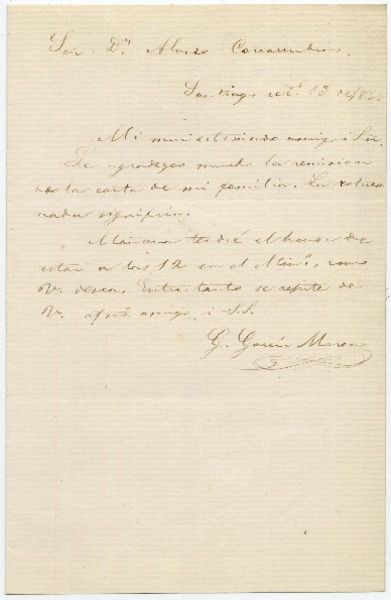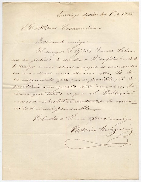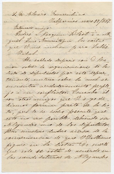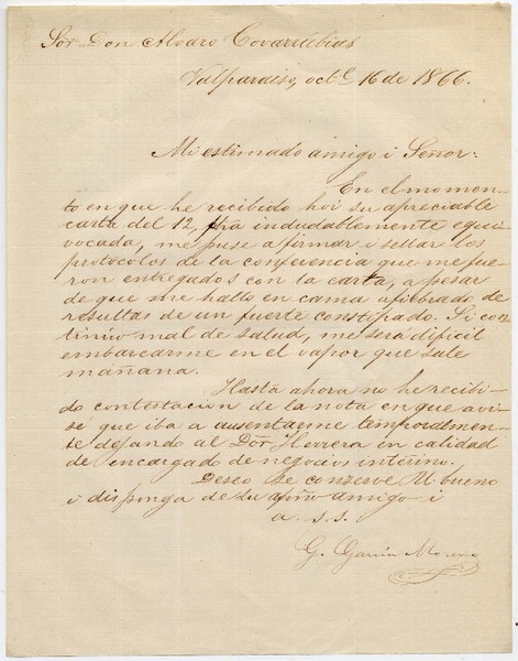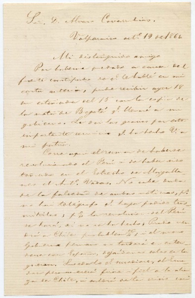[Chile] [a] Alvaro Covarrubias [Carta], 1861 Octubre 25, [manuscrito] Wenceslao Covarrubias.