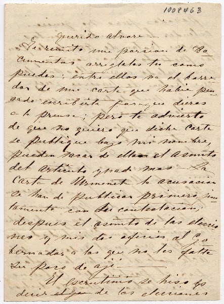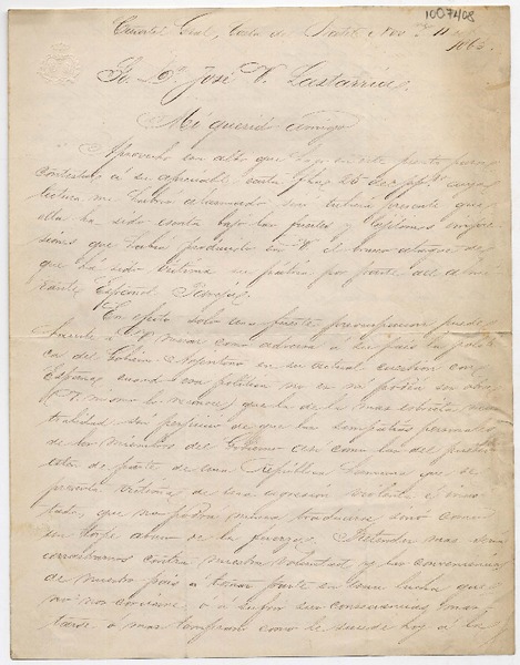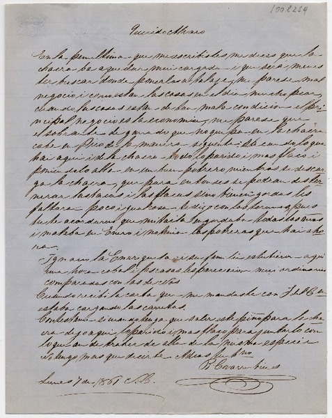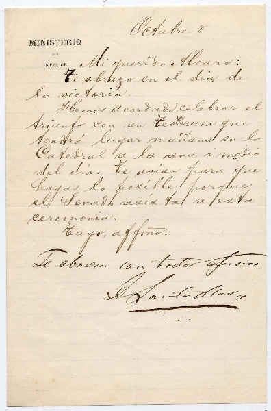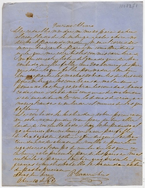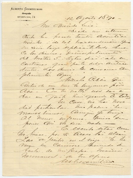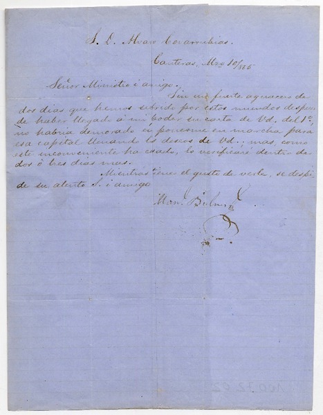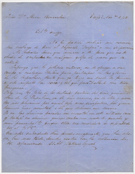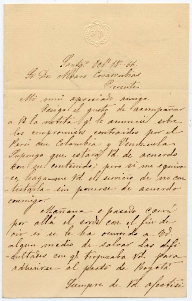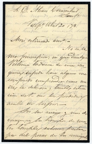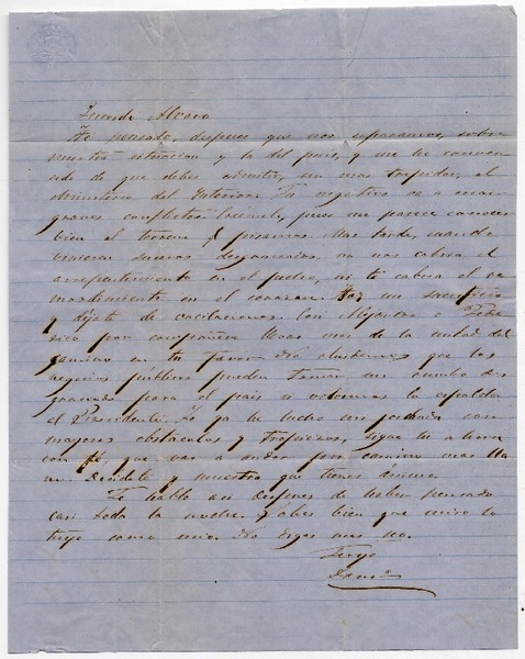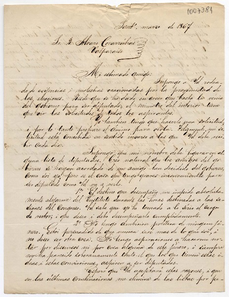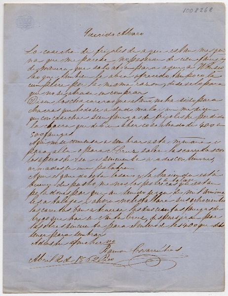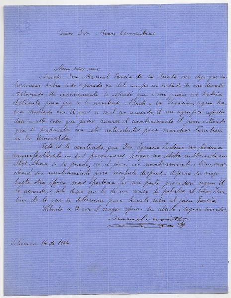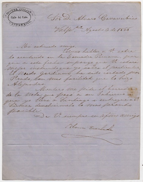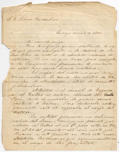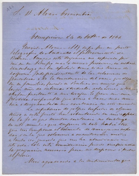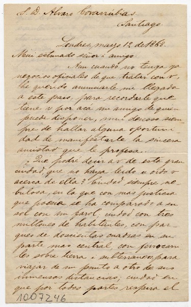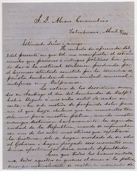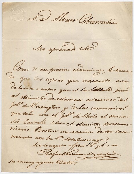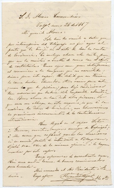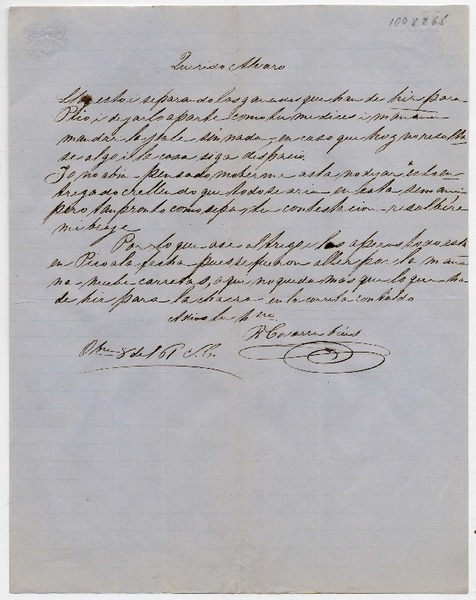 [a] Alvaro Covarrubias [Carta], 1861 Octubre 7, [manuscrito] Wenceslao Covarrubias.