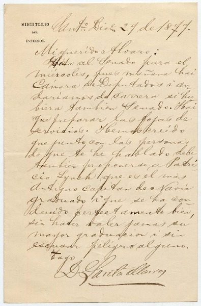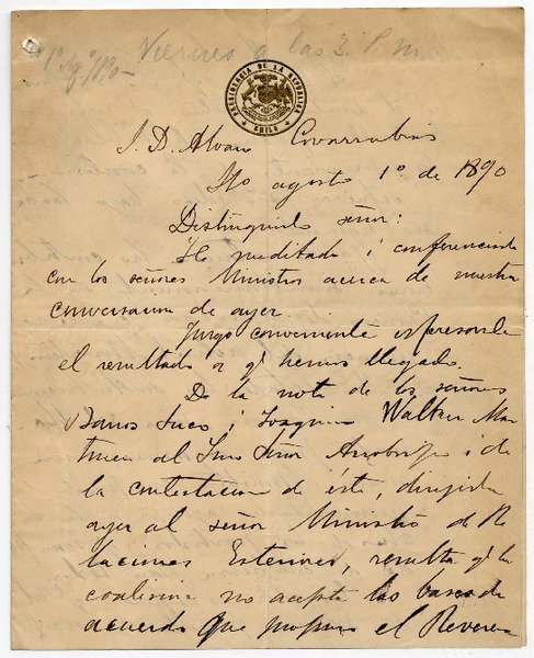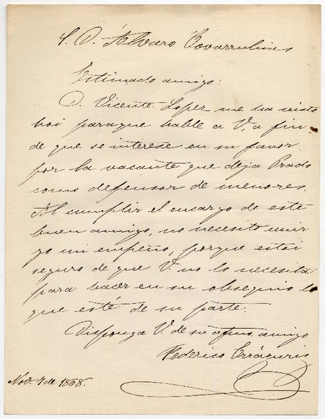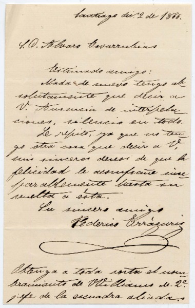 [Carta], Alvaro : [manuscrito] Federico Errázuriz.