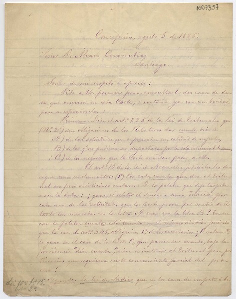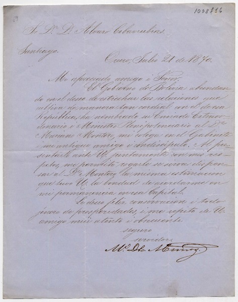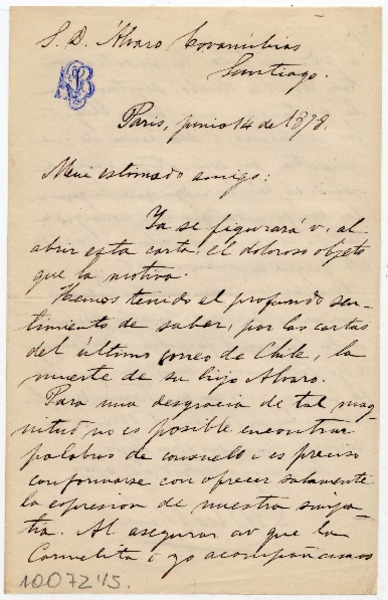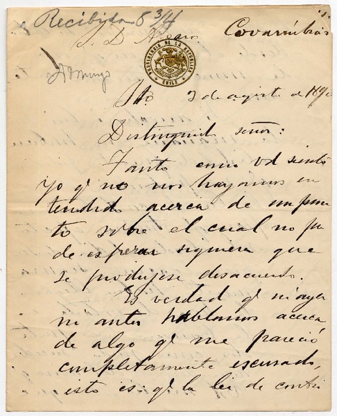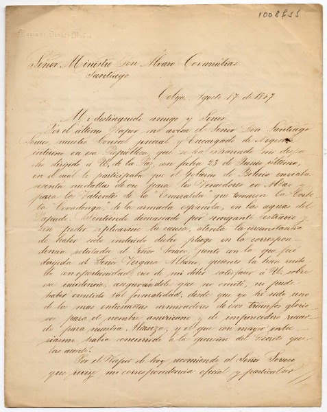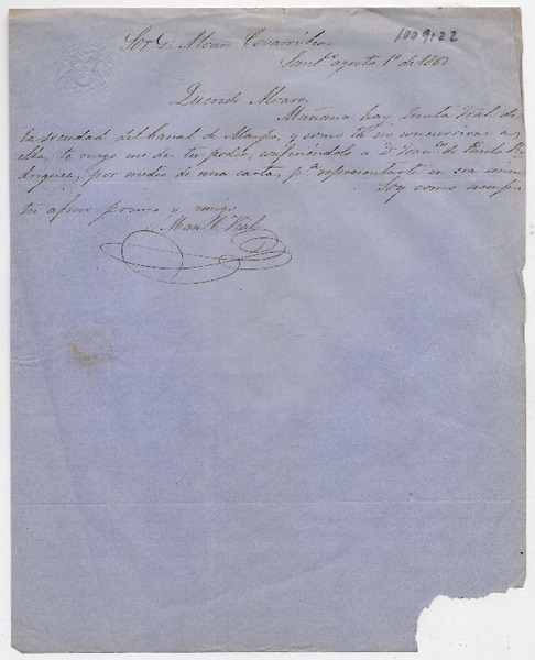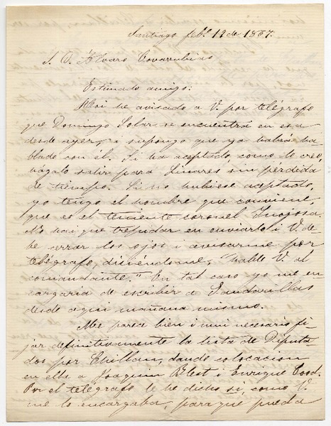 Manuscritos chilenos - Errázuriz Zañartu, Federico - Covarrubias, Alvaro - Manuscritos - Correspondencia