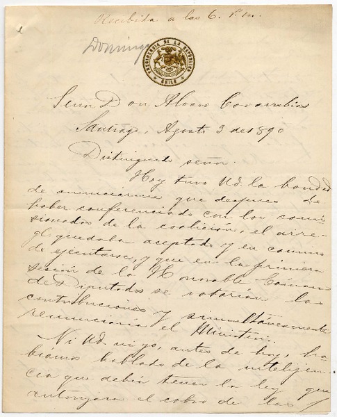 Correspondencia - Covarrubias, Alvaro - Santa María, Domingo - Manuscritos - Manuscritos chilenos