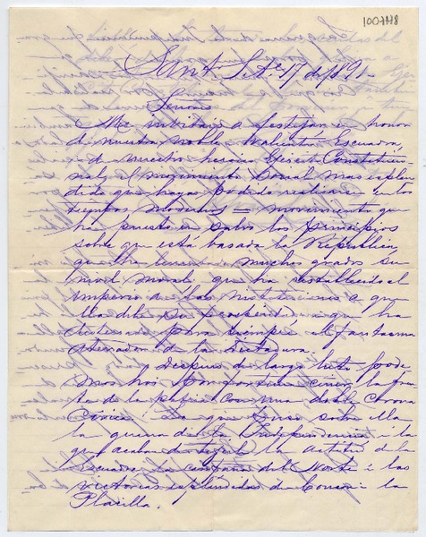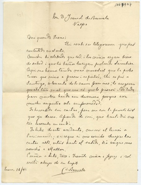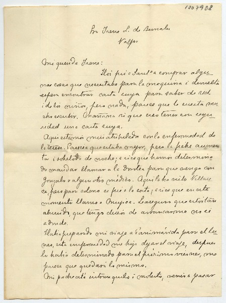 [Carta] 1907 Sept[iembre] 20, Sant[iago] [para] Leoncio Bernales L. [manuscrito] Daniel.