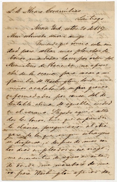 [Carta] [18]47 setiembre 3, [Santiago] a Alvaro [Covarrubias] [manuscrito] Domingo [Santa María].