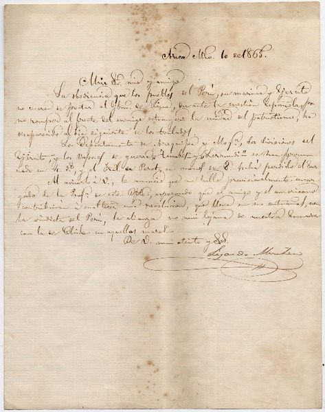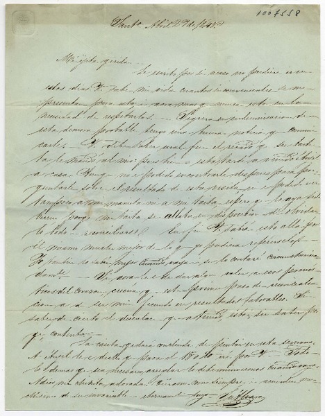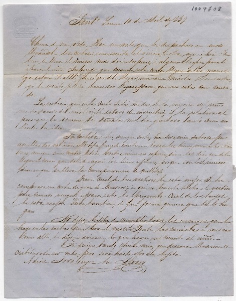 [Carta] Casa de JP Abril 4 167 [1867] : [manuscrito] José Pardo.