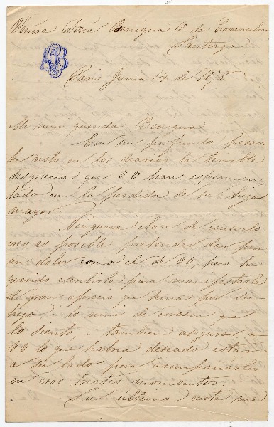 Correspondencia - Ortúzar, Benigna - Manuscritos chilenos
