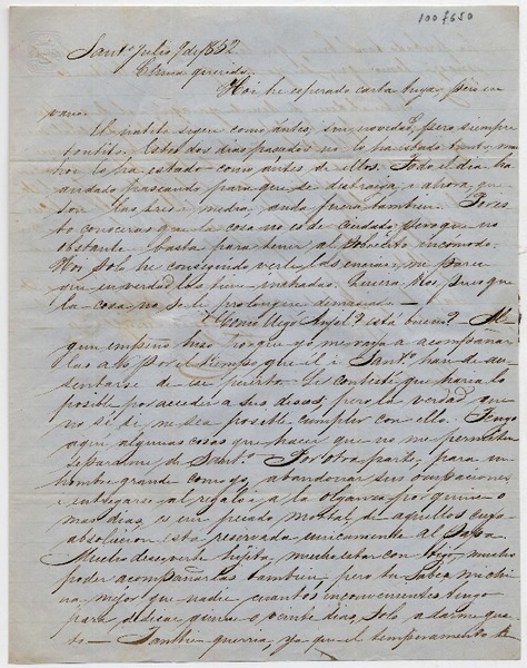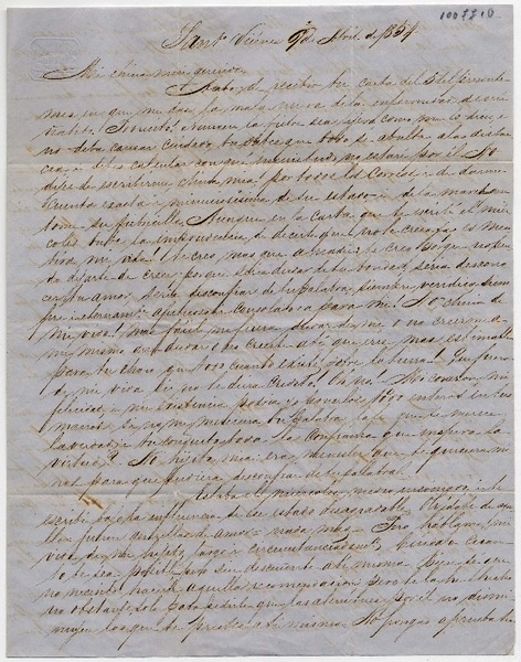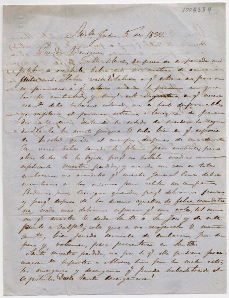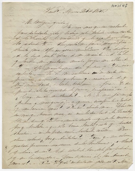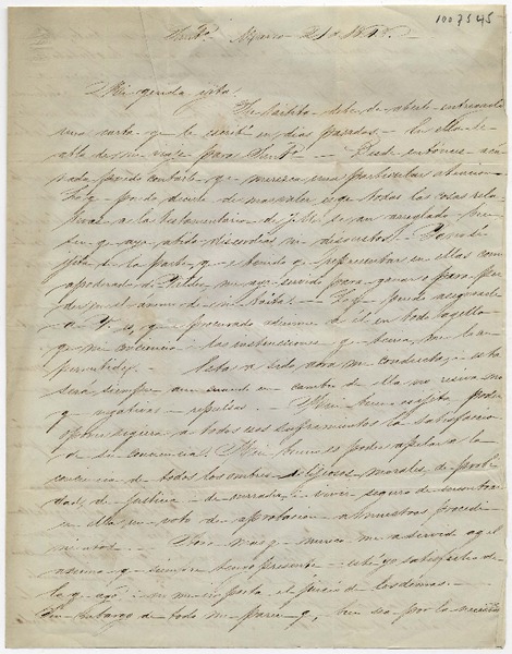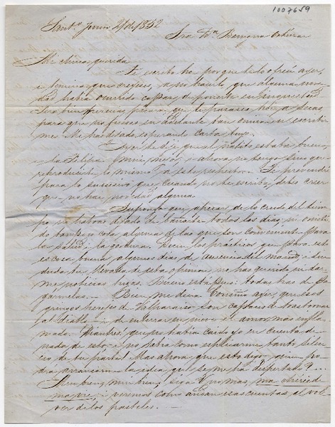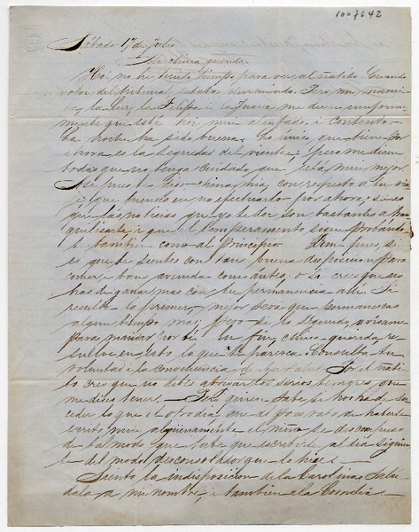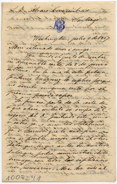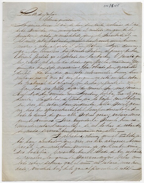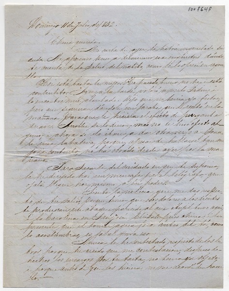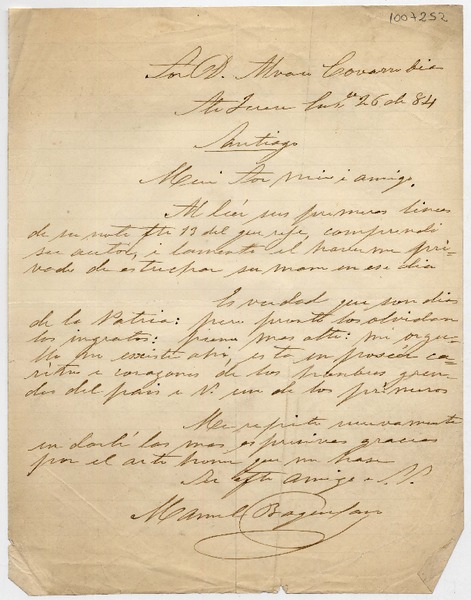 [Carta] [1852] Julio 10, Santiago, de [a] Benigna Ortúzar de Covarrubias. [manuscrito] Alvaro [Covarrubias].