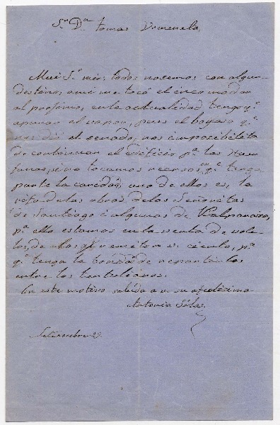 [Carta] [18]29 Setiembre, [Santiago?] [al] Sr. Dn. Tomas Urmeneta [manuscrito] Antonia Sálas.