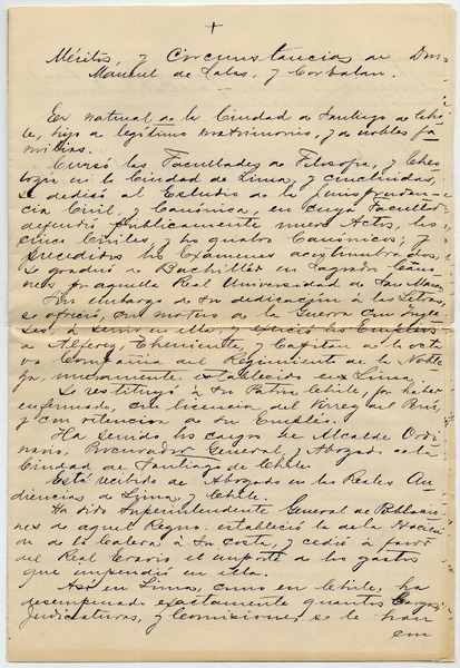 [Documento] 1778 Febrero 26, Madrid Méritos y circuntancias de Don Manuel de Salas y Corbalan [manuscrito] Dionisio Josef Ruiz.