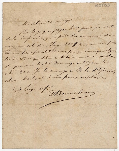 [Carta] 1819 M[ar]zo 30, [Santiago?] [al] Sor Dn. Manuel Salas [manuscrito] Diego Antonio Barros.