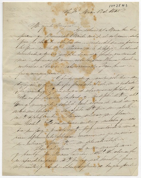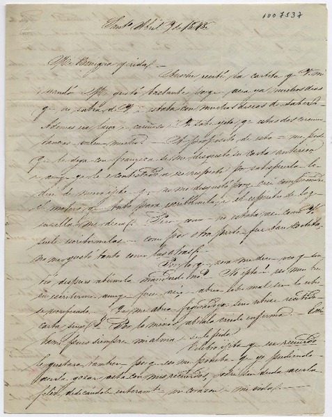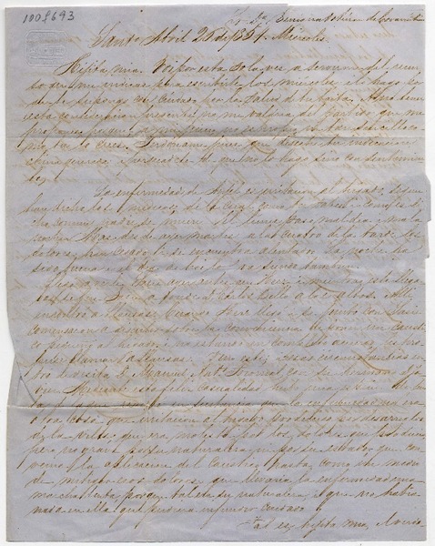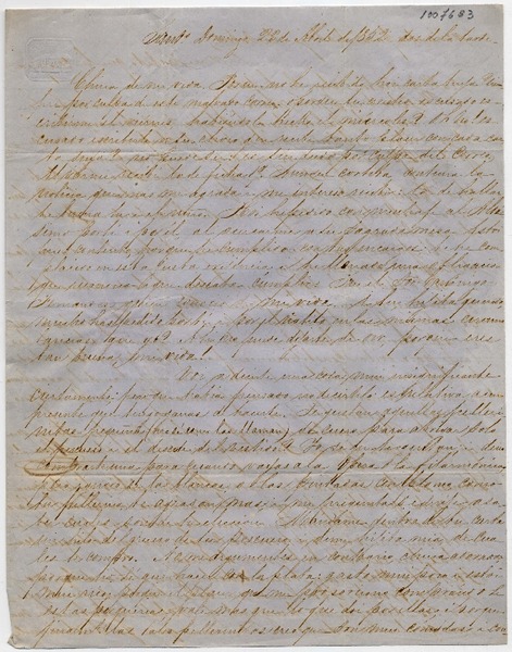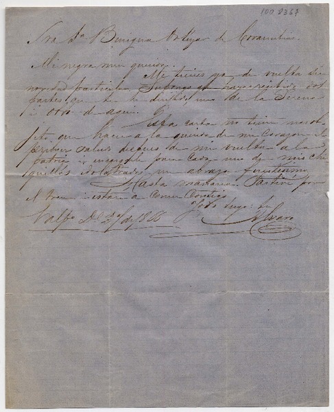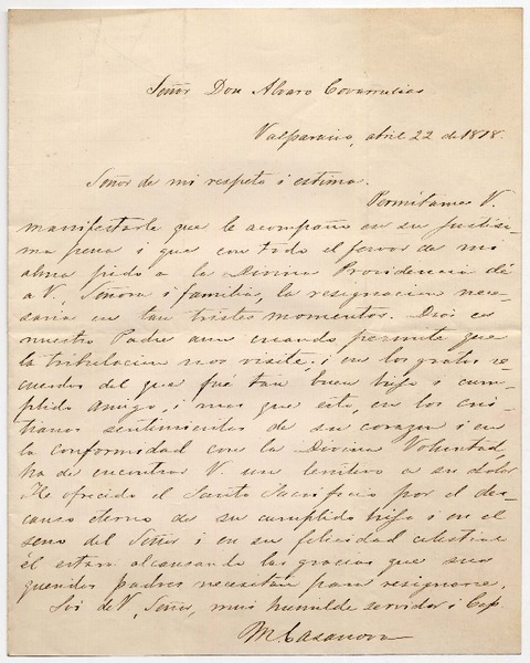 Carta de Don Alvaro Covarrubias a Doña Benigna Ortúzar 25 de abril 1848 [manuscrito]