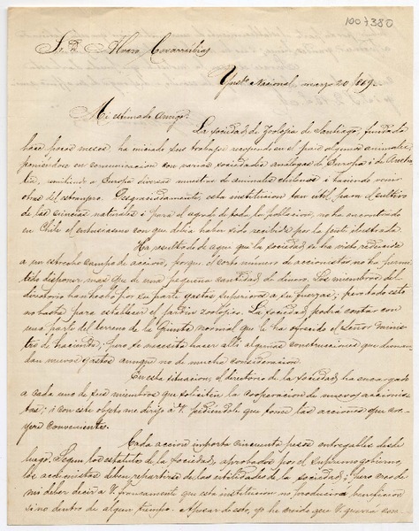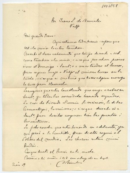 [Carta] 1910 marzo 19, Santiago [a] S. D. Daniel Bernales Mancheño [manuscrito] Fernando Lazcano.