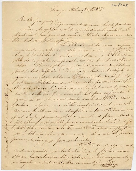 [Carta] 1848 febrero 7, Larmagüe [a] Benigna Ortúzar [manuscrito] Alvaro [Covarrubias].