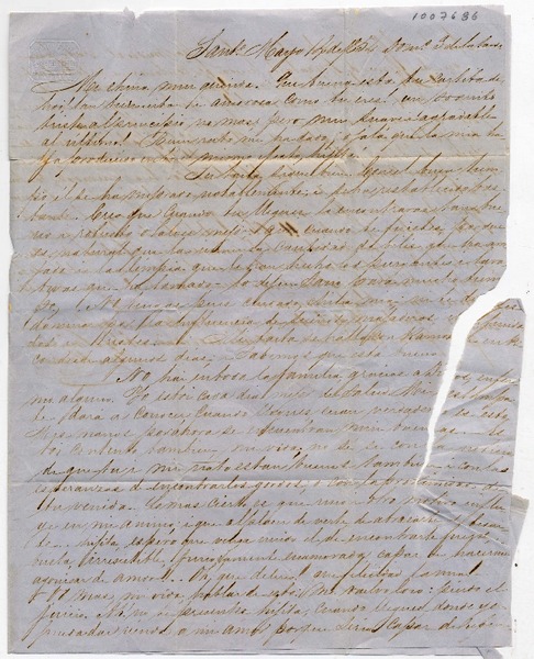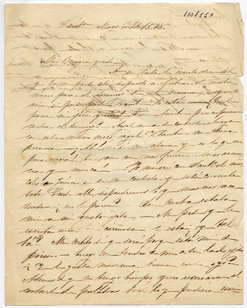 [Carta] 1848 Mayo 5, Santiago [a] Benigna Ortúzar [manuscrito] Alvaro [Covarrubias].